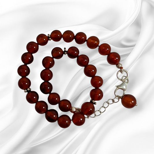 Authentic Carnelian Gemstones with 925 Sterling Silver Women's Beads Bracelet