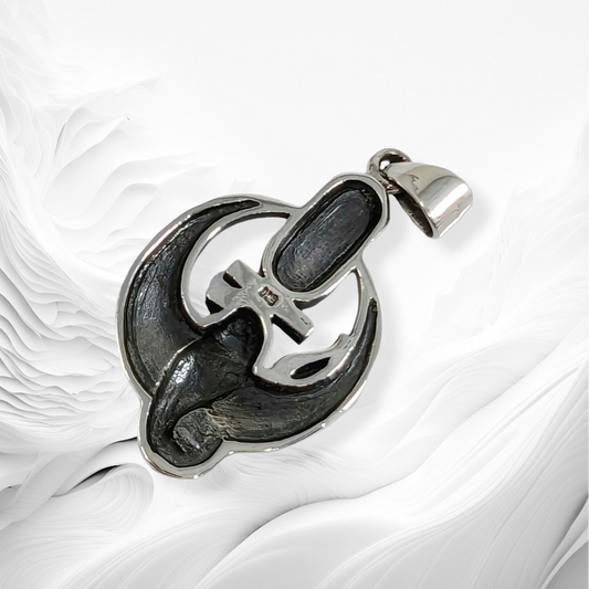 925 Sterling Silver Men's Pendant *Silver Cobra, Wings and Egyptian Cross Pendant