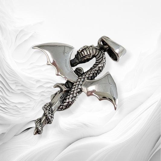 925 Sterling Silver Men's Pendant Silver Dragon & Sword Pendant