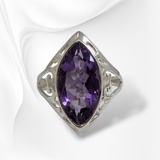 925 Sterling Silver Filigree Women's Ring with Authentic Amethyst Gemstone