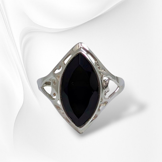 925 Sterling Silver Filigree Women's Ring with Authentic Black Onyx Gemstone