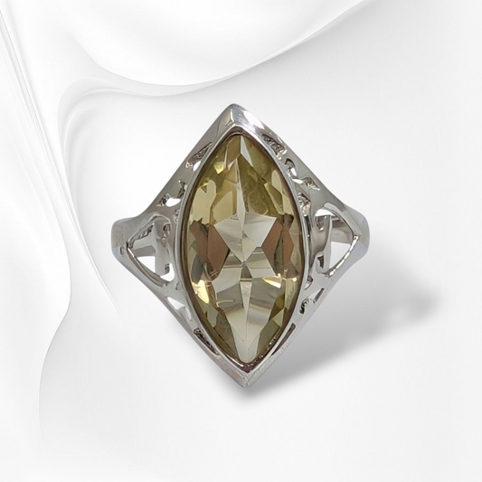 925 Sterling Silver Filigree Women's Ring with Authentic Lemon Topaz