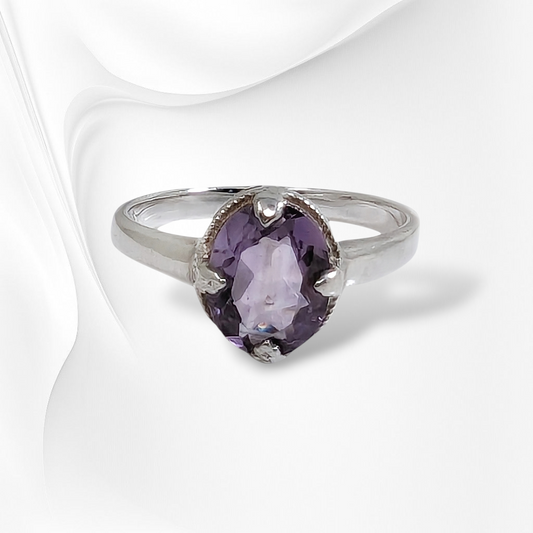 925 Sterling Silver Women's Ring with Authentic Amethyst Gemstone