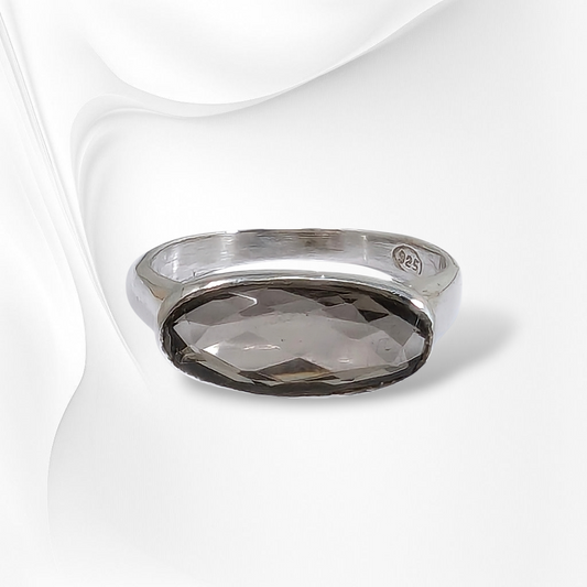 925 Sterling Silver Women Ring with Authentic Smoky Quartz