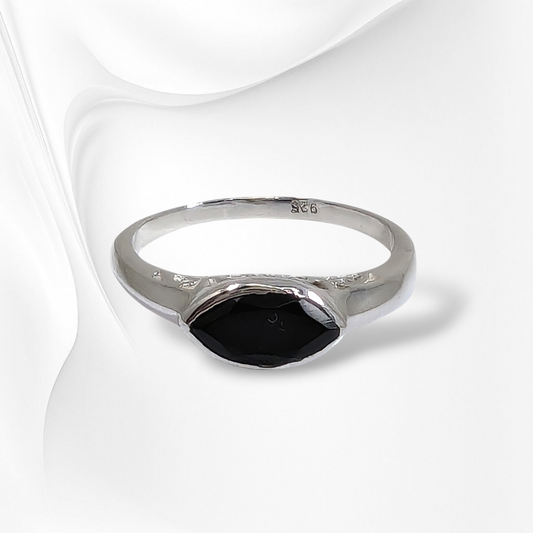 925 Sterling Silver Women Ring with Authentic Black Onyx Gemstone