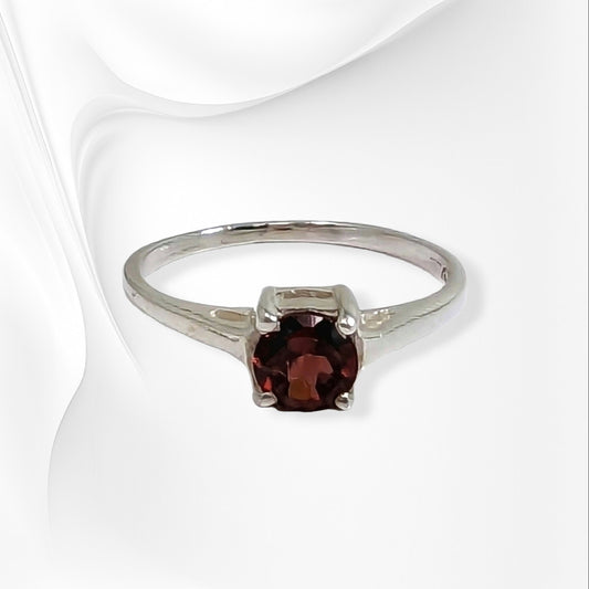 925 Sterling Silver Women's Ring with Authentic Red Garnet Gemstone