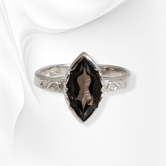 925 Sterling Silver Women's Ring with Authentic Smoky Topaz