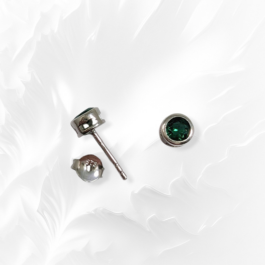 925 Sterling Silver Stud Earrings with Emerald Cubic Zirconia Crystals