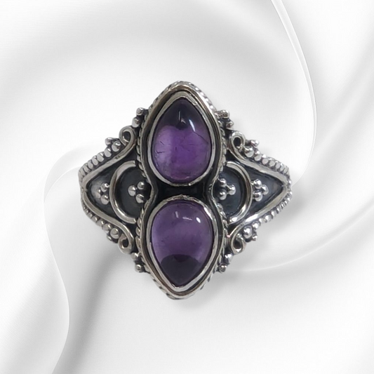 925 Sterling Silver Women's Ring with Authentic Amethyst Gemstones
