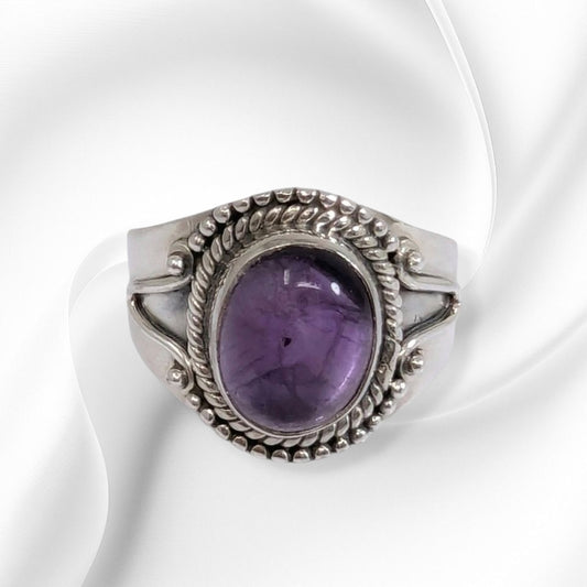 925 Sterling Silver Women's Ring with Authentic Amethyst Gemstone