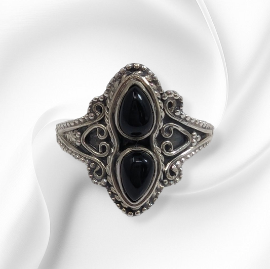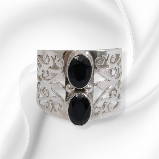 925 Sterling Silver Women's Ring with Authentic Black Onyx Gemstones