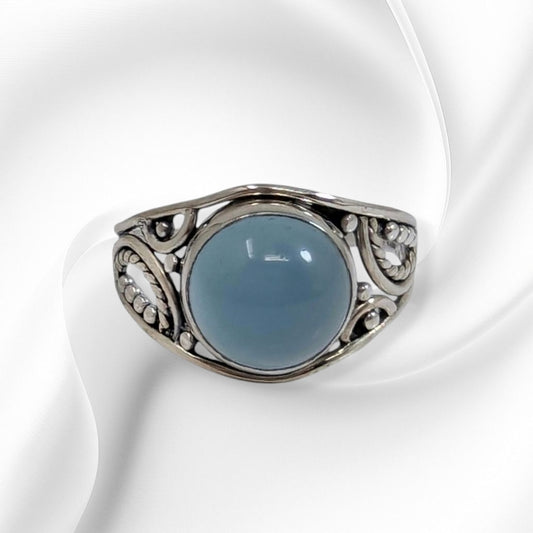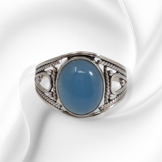 925 Sterling Silver Women's Ring with Authentic Blue Chalcedony Gemstone