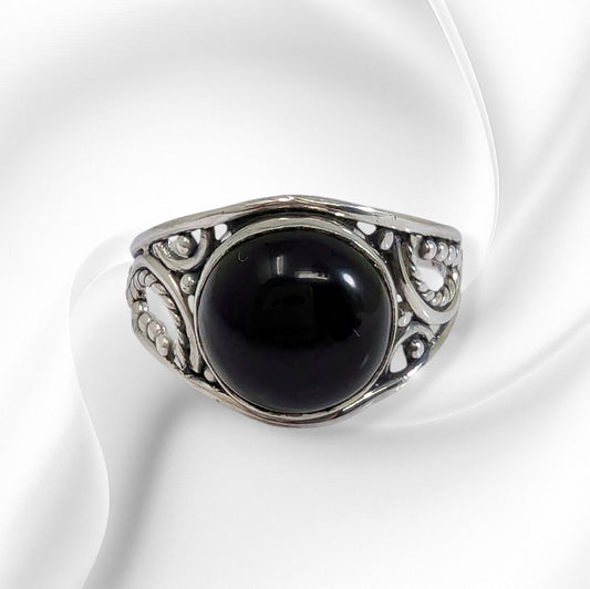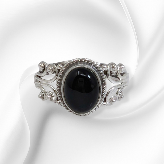 925 Sterling Silver Women's Ring with Authentic Black Onyx Gemstone
