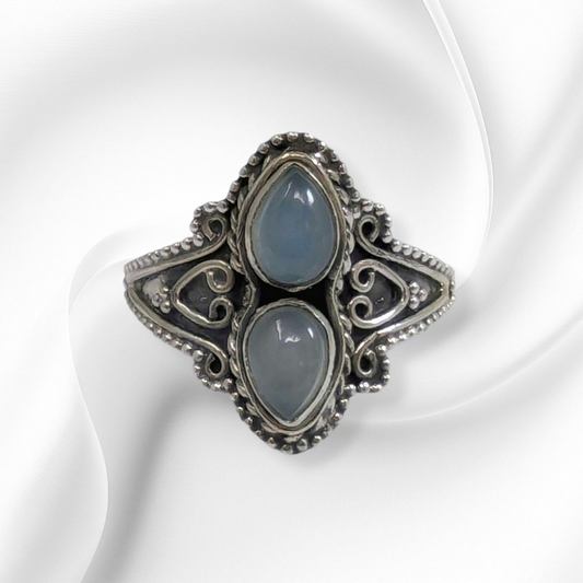 925 Sterling Silver Women's Ring with Authentic Blue Chalcedony Gemstones