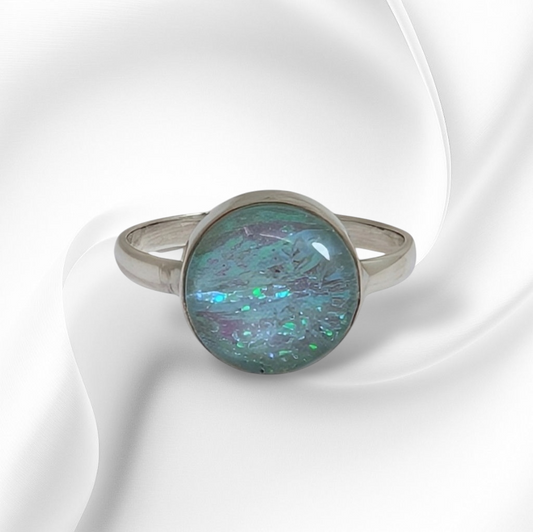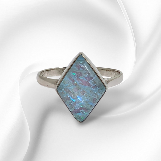 925 Sterling Silver Women's Ring with Authentic Blue Opal
