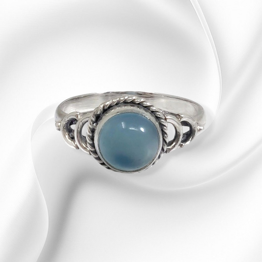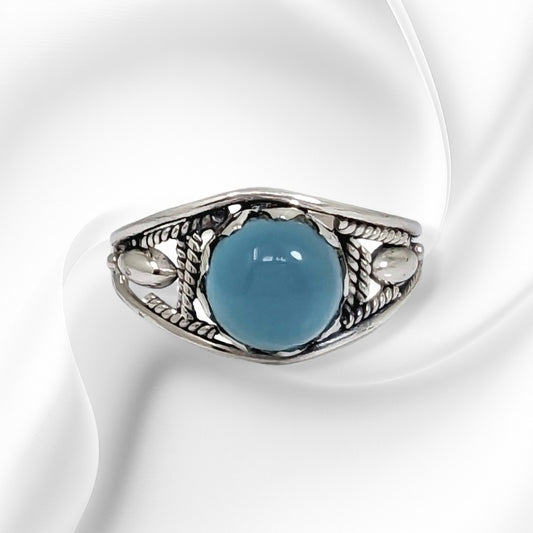 925 Sterling Silver Women's Ring with Authentic Blue Chalcedony Gemstone