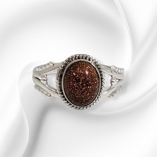 925 Sterling Silver Women's Ring with Authentic Goldstone Gemstone