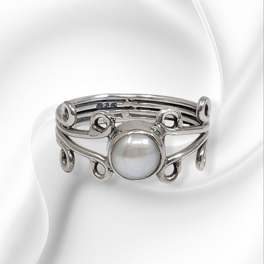 925 Sterling Silver Women's Ring with Authentic Freshwater Pearl