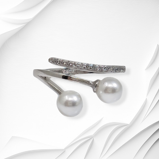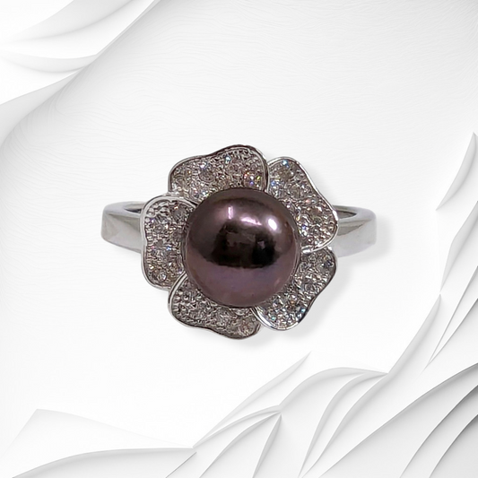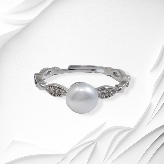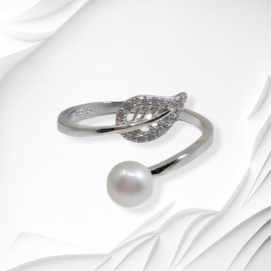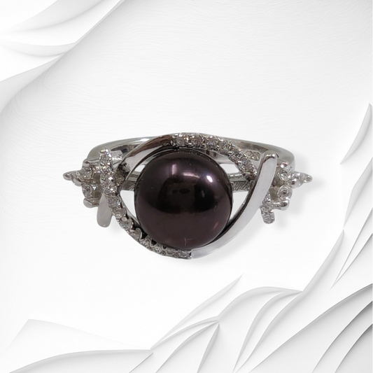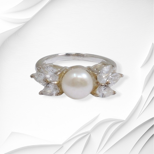 925 Sterling Silver Women's Ring with Authentic Freshwater Pearl and Cubic Zirconia Crystals