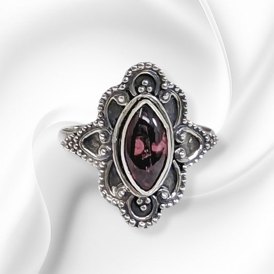 925 Sterling Silver Women's Ring With Authentic Red Garnet Gemstone