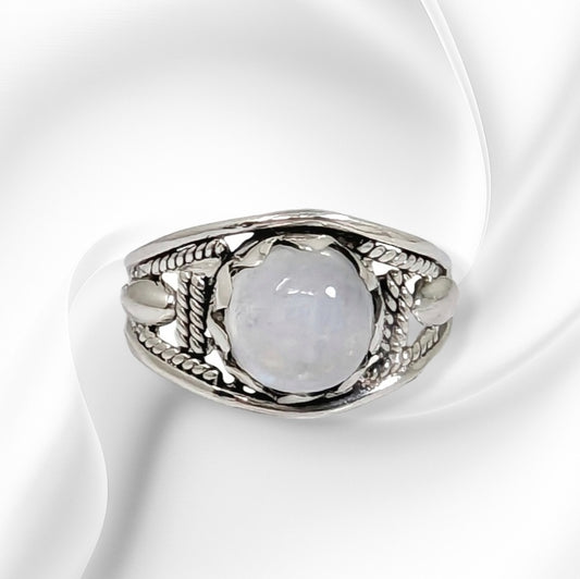 925 Sterling Silver Women's Ring with Authentic Rainbow Moonstones