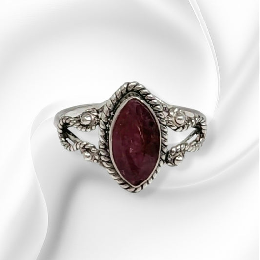 925 Sterling Silver Women's Ring With Authentic Red Corundum Gemstone