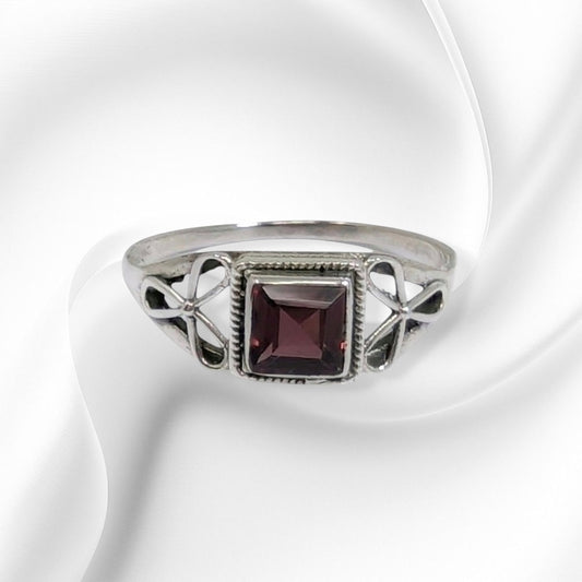 925 Sterling Silver Women's Ring with Authentic Red Garnet Gemstone