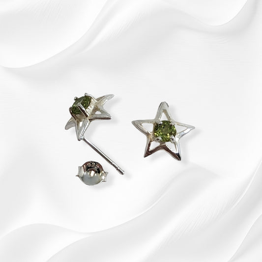 925 Sterling Silver Stud Earrings with Authentic Peridot Gemstones