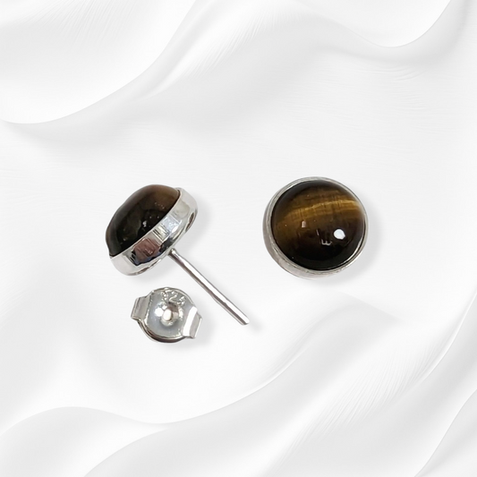 925 Sterling Silver Stud Earrings With Authentic Tiger's Eye Gemstones