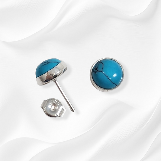 925 Sterling Silver Stud Earrings With Authentic Turquoise Gemstones