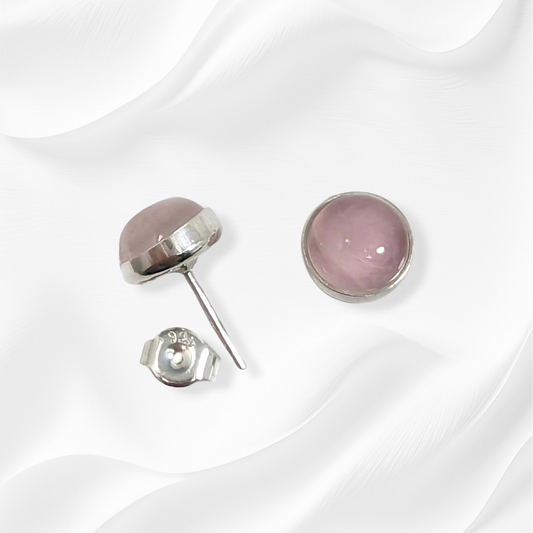 925 Sterling Silver Stud Earrings With Authentic Rose Quartz