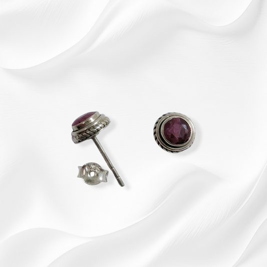 925 Sterling Silver Stud Earrings with Authentic Red Corundum Gemstones