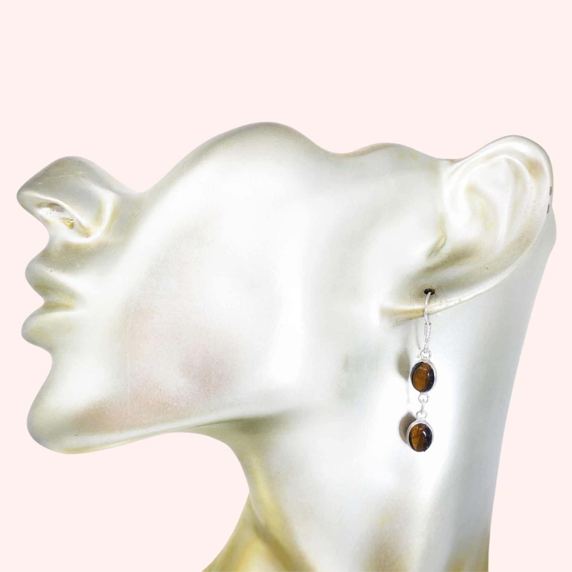 These Genuine 925 Sterling Silver Earrings are adorned with authentic Tiger's Eye Gemstones, making them a sophisticated and unique accessory for any occasion. The oval-shaped stones are set in a dangle/drop style, adding a touch of elegance to your outfit. These handmade Earrings are nickel-free and hallmarked 925. Perfect for Mother's Day, Christmas or any special anniversary or birthday gift, these stunning Earrings are a perfect blend of beauty and nature.
