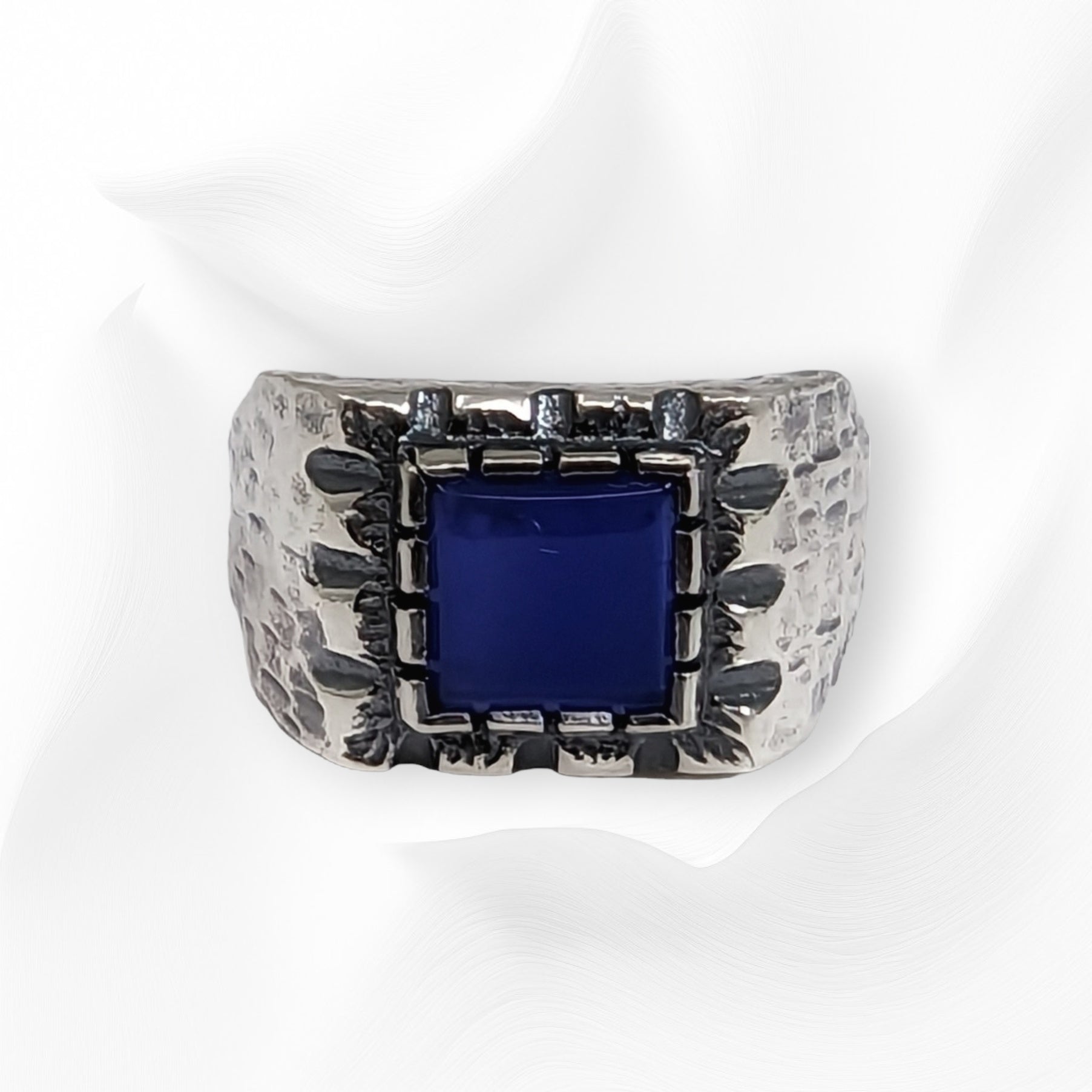 Elevate your style with this exquisite Men's Ring, crafted from solid 925 Sterling Silver and authentic Blue Agate Gemstone. The square-shaped main stone is set in a solitaire style. This Handmade Ring is perfect for any occasion, whether it's a graduation, anniversary, Father's Day, birthday or Valentine's Day. The Ring is certified with a hallmark 925, it's nickel-free and features excellent cut grade. This piece is part of the Men's Rings collection and boasts a range of themes, from beauty and art to gothic and retro. You'll love the ethnic-inspired details and inspirational symbols.