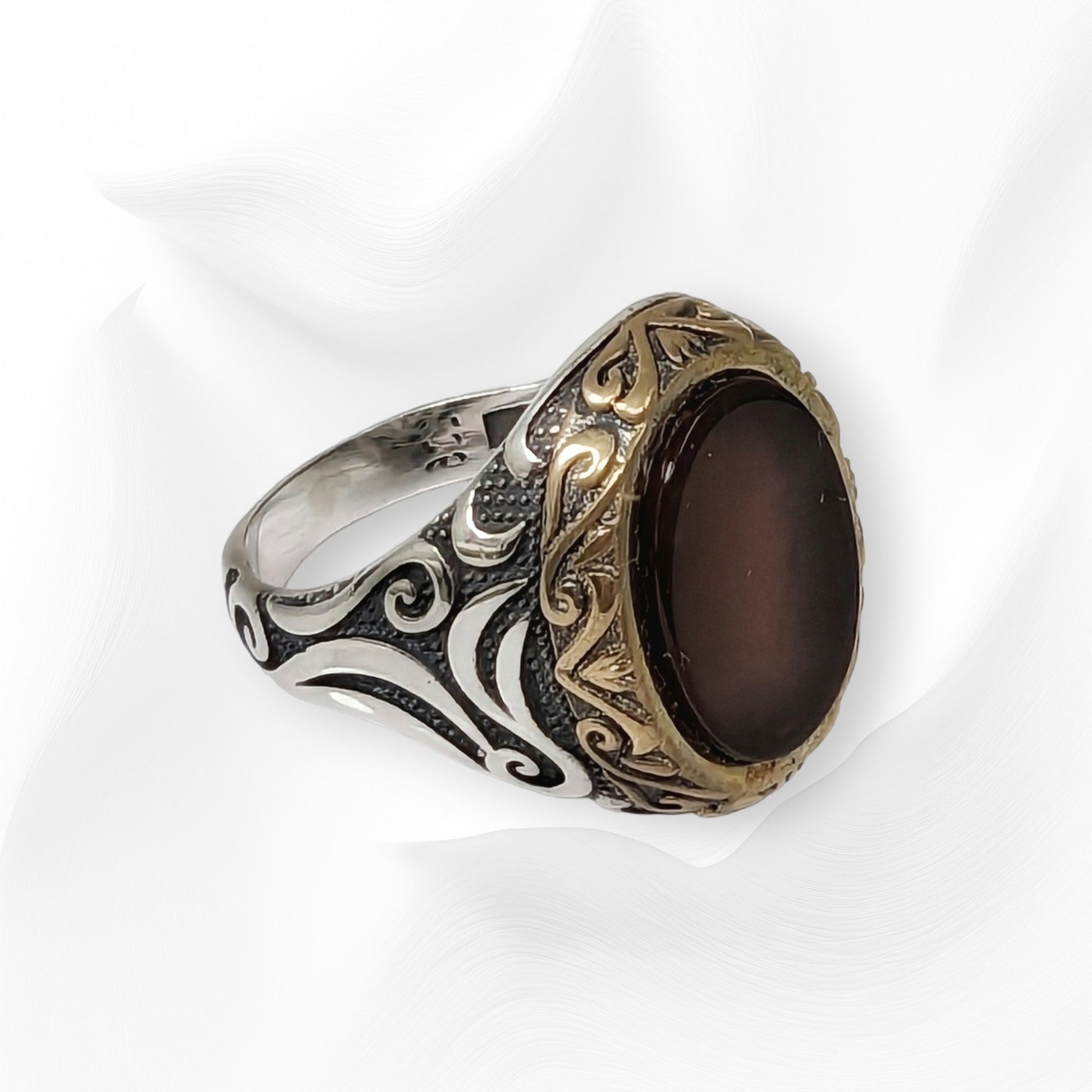 This stunning silver Men's Ring is crafted from solid 925 Sterling Silver, featuring a beautiful Brown Agate Gemstone. The oval-shaped stone is the main attraction of the Ring and is accentuated by a otoman setting style. The Ring is handmade design and is hallmarked 925. Perfect for a range of occasions, this men's ring is versatile for graduation, anniversary, Father's Day, birthday and Valentine's Day gifts. The Ring has a unique style with a touch of retro, ethnic and artistic themes. More over, it is nickel-free, making it safe for sensitive skin. Elevate your jewelry collection with this beautiful Ring.