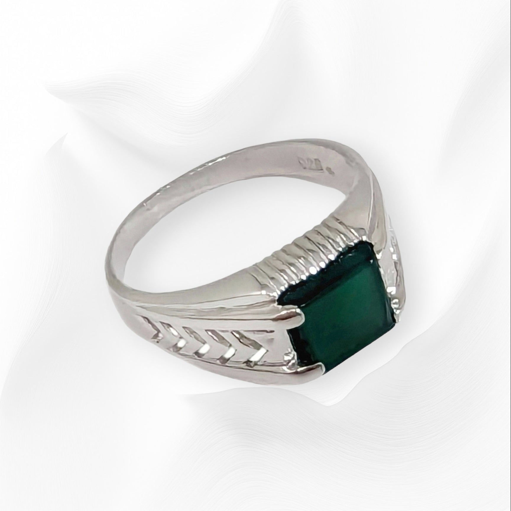 925 Sterling Silver Men's Ring with Authentic Green Agate Gemstone