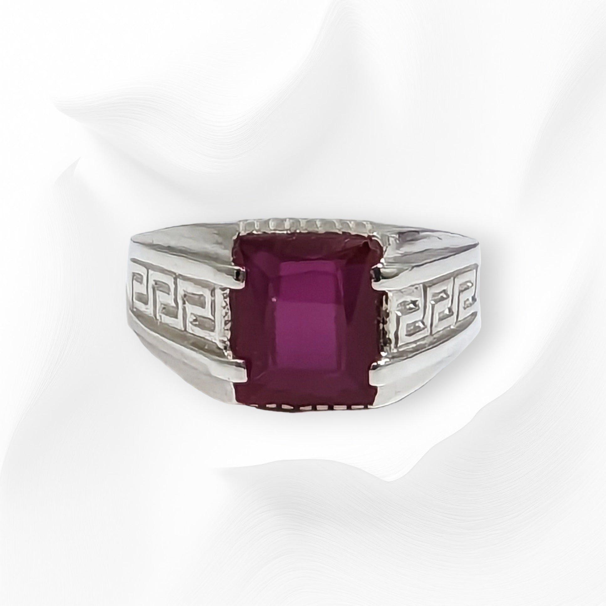 This Sterling Silver Men's Ring is a one-of-a-kind piece that features a beautiful Ruby Cubic Zirconia Crystal. Crafted out of high-quality 925 Sterling Silver, this Ring is perfect for a variety of occasions, including weddings, graduations, Father's Day and more. The solitaire with accents setting style showcases the stunning Cubic Zirconia. The handmade Ring is hallmarked 925 and is nichel-free, ensures the quality of the Ring.