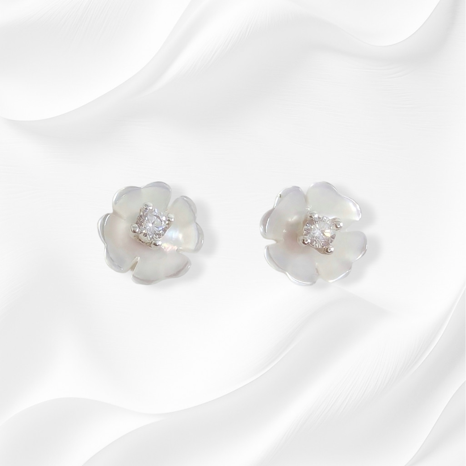 925 Sterling Silver Stud Earrings with Authentic Mother of Pearl and Cubic Zirconia Crystals