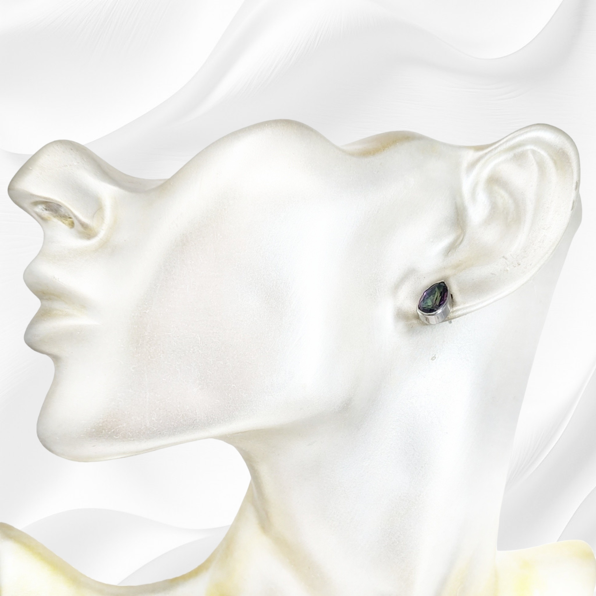 925 Sterling Silver Stud Earrings with Authentic Mystic Topaz