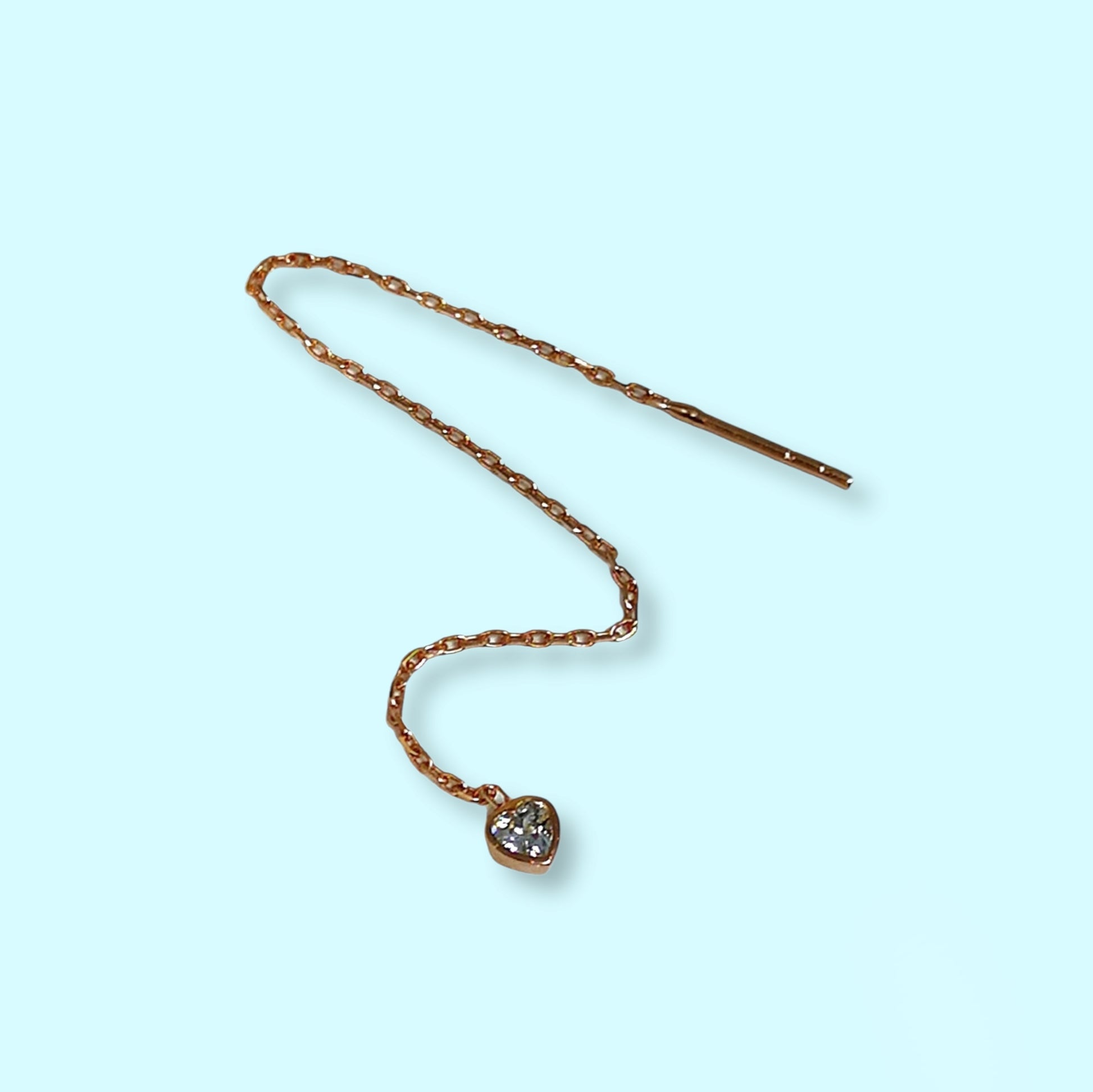 Threader / 925 Sterling Silver, 14K Rose Gold, Cubic Zirconia Crystal / Clear, Rose GoldEE95466