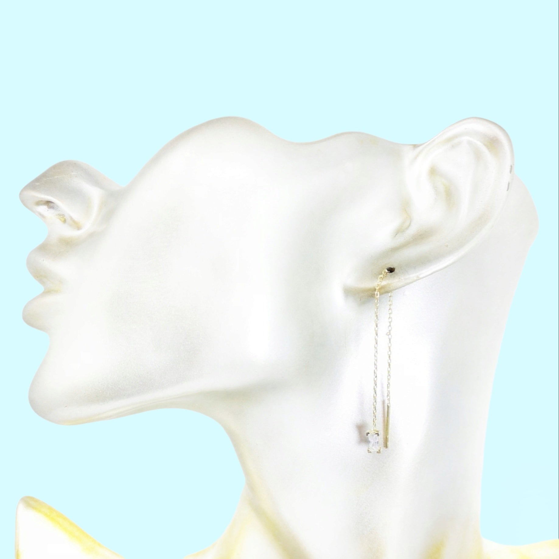 925 Sterling Silver Threader Earrings with Cubic Zirconia Crystals, 14K Gold plated