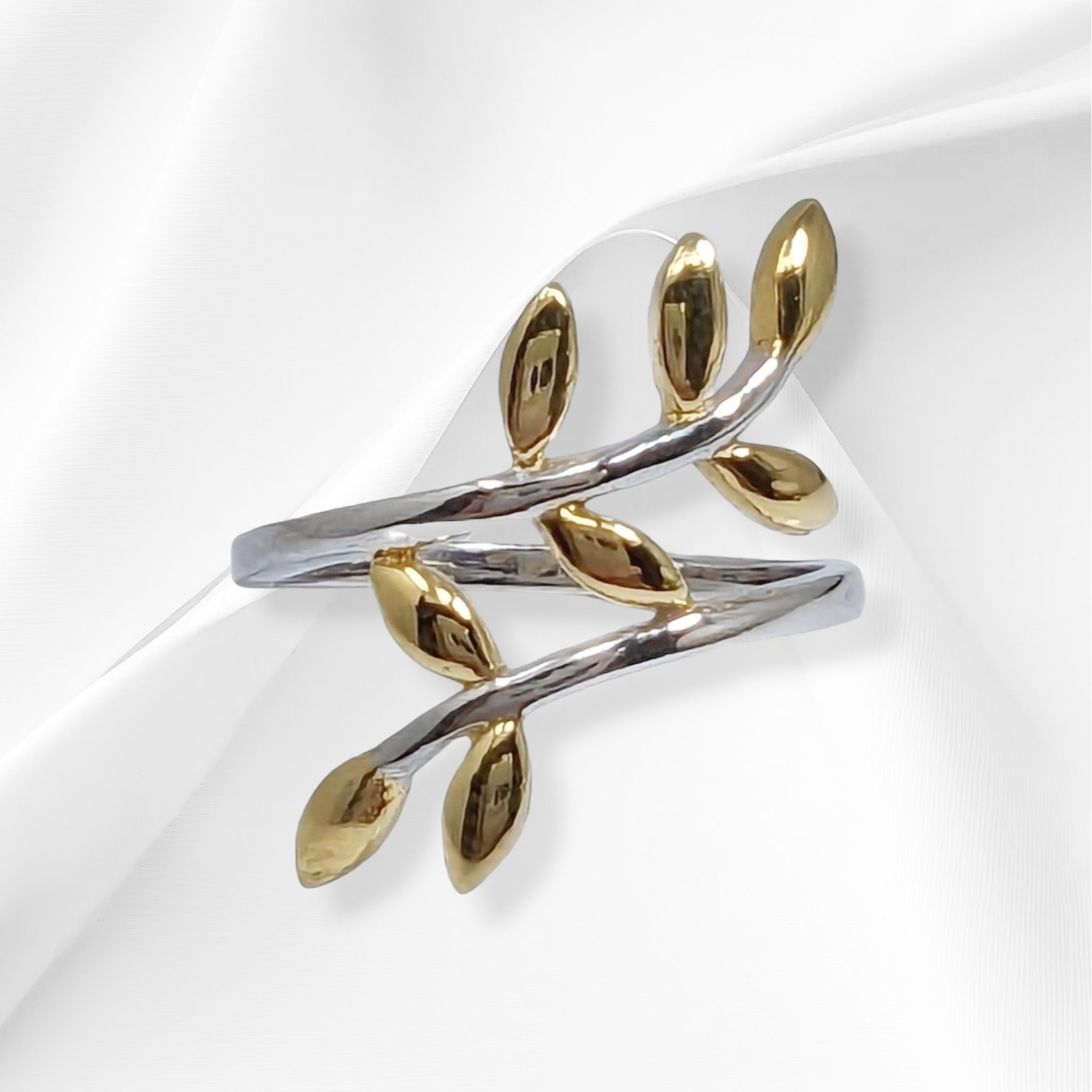 This beautiful Woman's Ring is made of genuine 925 Sterling Silver and features a unique asymmetrical design inspired by leaves. The Ring is handcrafted and features a wrap-around style, making it perfect for stacking with other Rings to create a truly unique look. This 14K Gold plated Sterling Silver Ring is perfect for any occasion, including Mother's Day, Christmas, graduation, anniversary, birthday and Valentine's Day and is hallmarked 925 for authenticity. The Ring is nickel-free and stackable, making it a versatile addition to any jewellery collection.