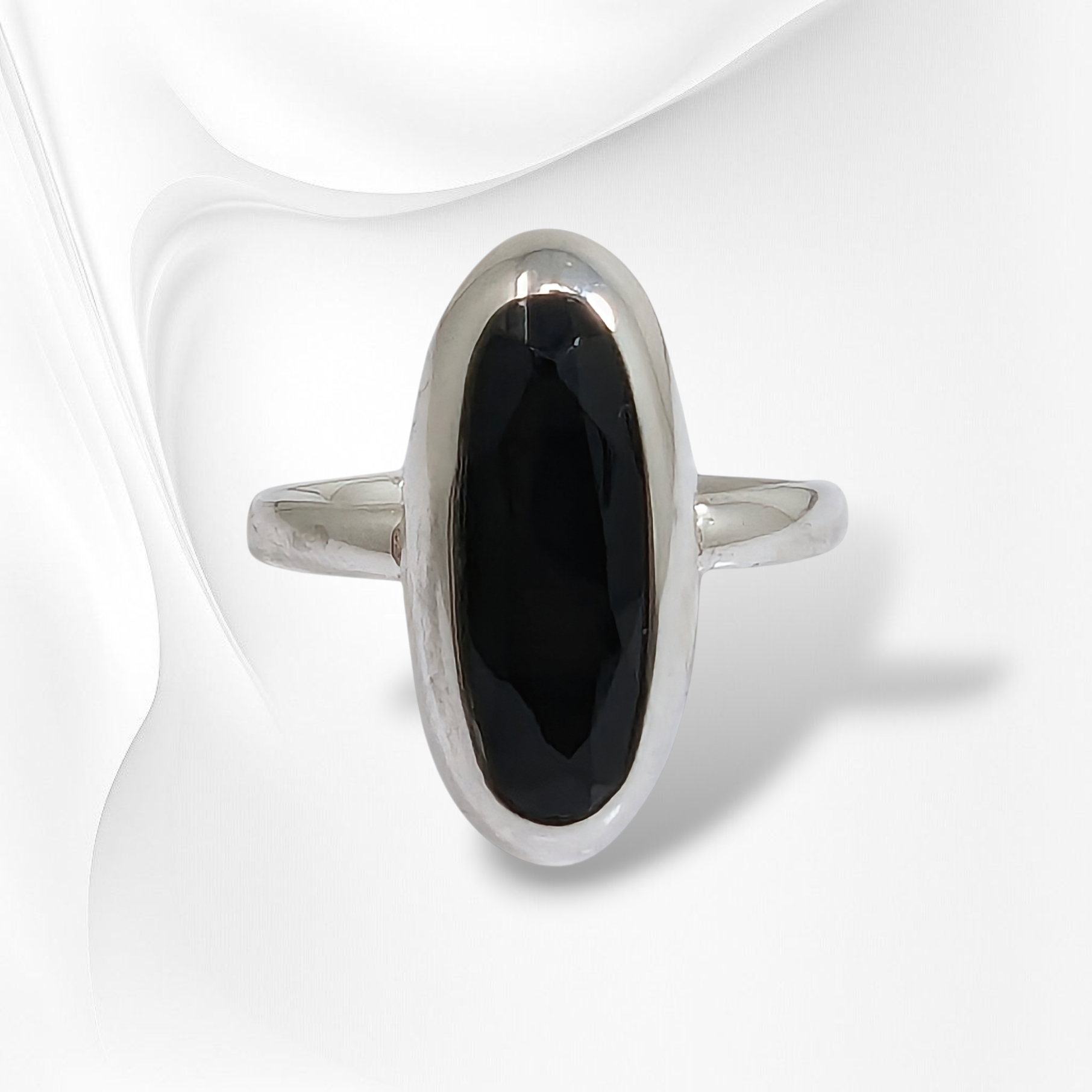 Crafted with elegance, this Woman's Ring is a testament to timeless style and grace. Featuring a captivating Black Onyx Gemstone, set in lustrous 925 Sterling Silver, the piece exudes a classic charm. The Ring is a nickel-free composition that caters to sensitive skin. Its hallmarked 925 and stackable design allows for versatile styling. This Ring is a celebration of minimalist artistry, making it an ideal choice for those special moments that call for a touch of elegance.