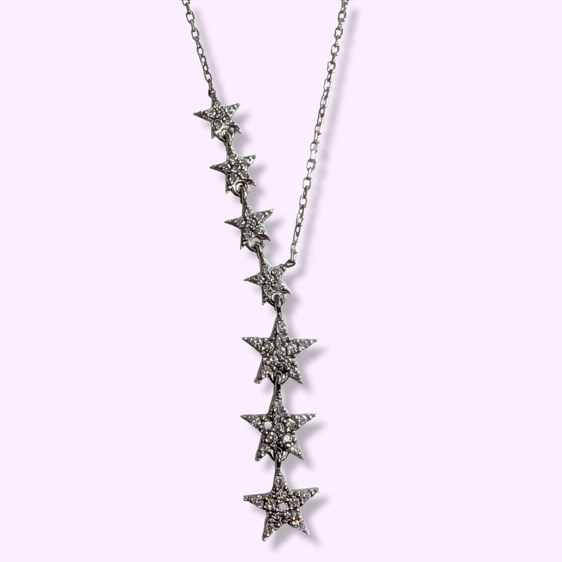 This Genuine 925 Sterling Silver Falling Stars Dangle Lariat Necklace with Cubic Zirconia Crystals is a beautiful accessory for special occasions like Mother's Day, Christmas, birthdays and anniversaries. The Necklace is crafted from high-quality 925 Sterling Silver and adorned with Clear Cubic Zirconia Crystals. Perfect for those who appreciate beauty, art and love-inspired jewellery, this Y-Drop style Necklace is a stylish and elegant addition to any jewellery collection. Signed with a hallmark 925 certification and nickel-free, this Necklace exudes quality and sophistication.