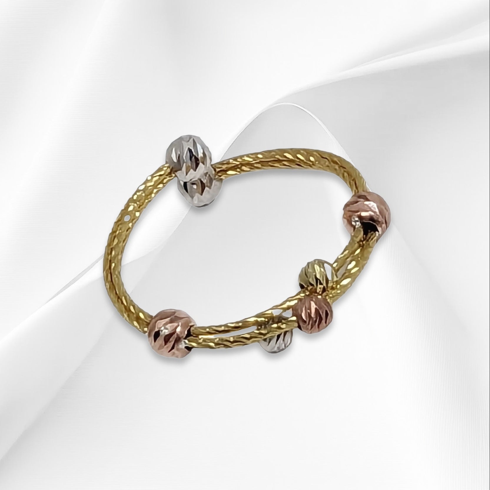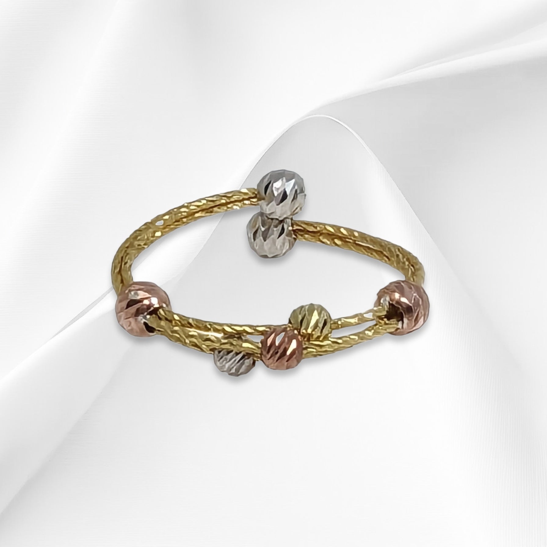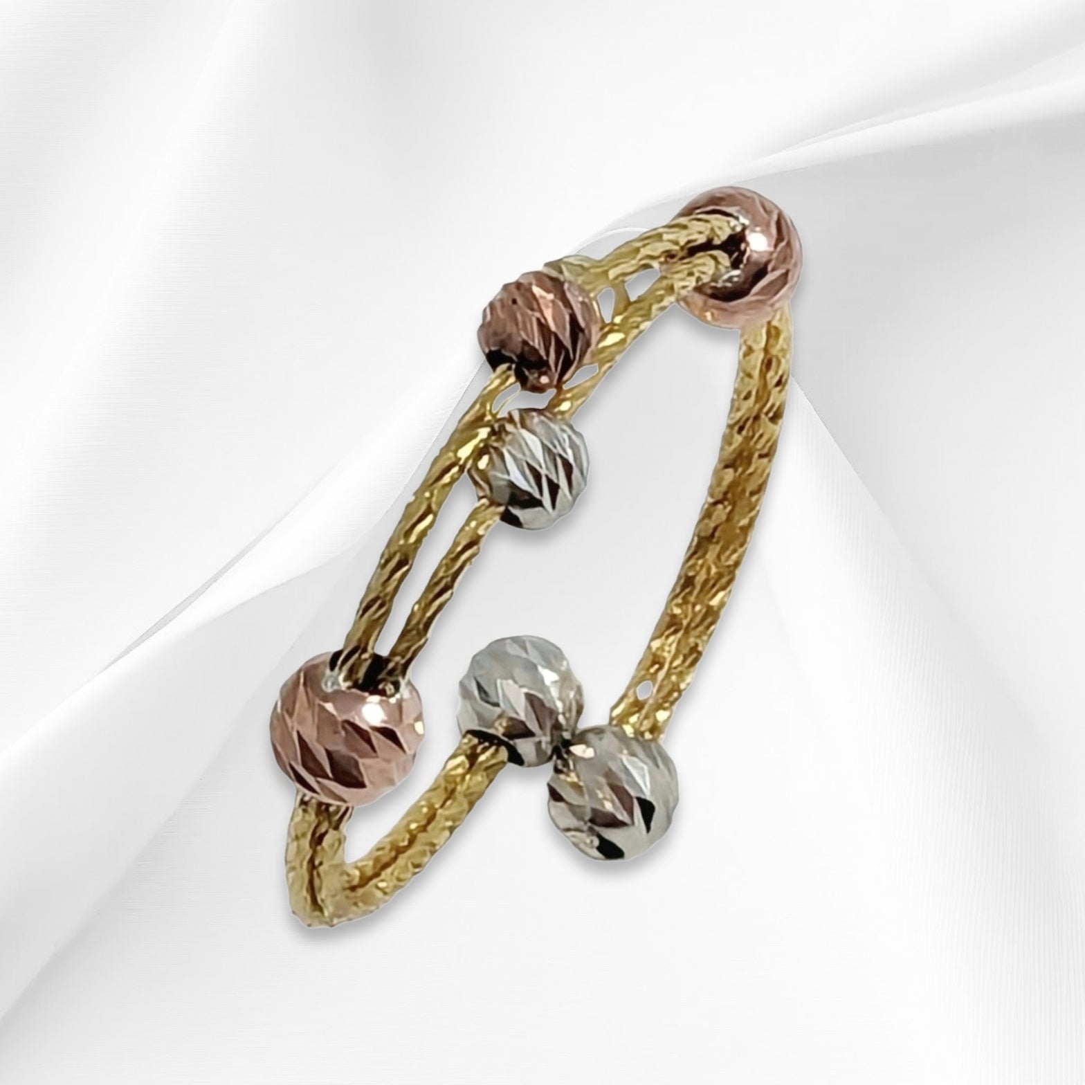 This beautiful Woman's Ring is made of genuine 925 Sterling Silver and features a unique diamond cut tricolour ball design. The band is 3mm wide and is perfect for any occasion, whether it be Mother's Day, Christmas, Graduation, Anniversary, Birthday or Valentine's Day.The Ring is Hallmarked 925 and nickel-free, making it perfect for those with sensitive skin.