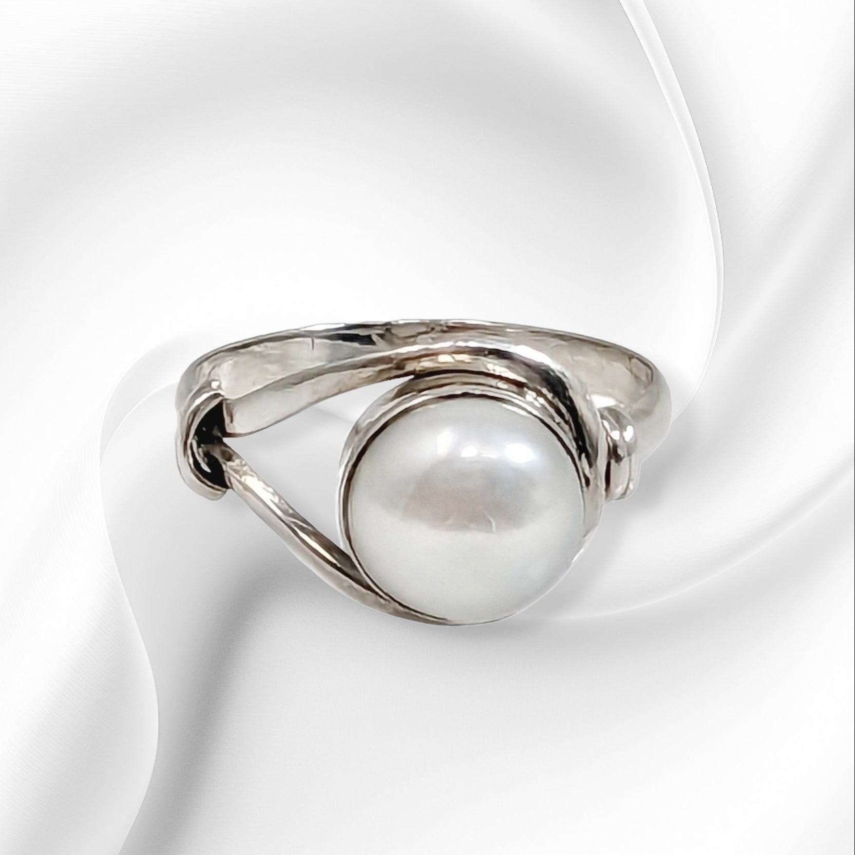 Add a touch of elegance to your jewellery collection with this beautiful handmade Ring. Crafted from genuine 925 Sterling Silver, this piece is perfect for any occasion. The last Freshwater Pearl is the centerpiece of this stunning assimmetrical Ring and is sure to turn heads. This Silver Ring is perfect for individuals who appreciate high-quality jewellery, is nichel-free and is hallmarked 925. The solitaire setting style gives this Ring a classic look. Ideal for Mother's Day, Christmas, Valentine's Day, Graduation, Anniversary, Birthday or just as a gift to yourself.