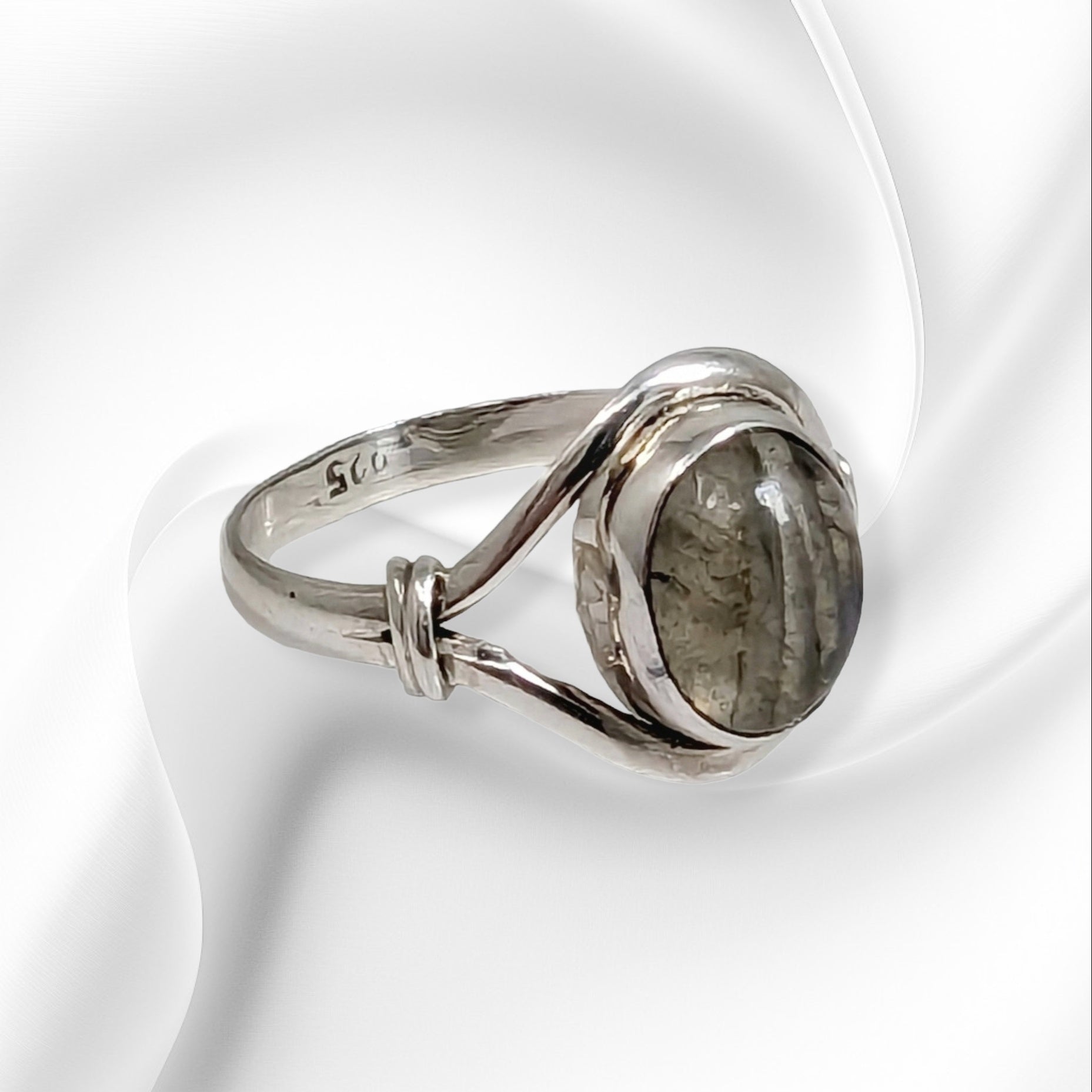 Add a touch of elegance to your jewellery collection with this beautiful handmade Ring. Crafted from genuine 925 Sterling Silver, this piece is perfect for any occasion. The last oval Labradorite Gemstone is the centerpiece of this stunning assimmetrical Ring and is sure to turn heads. This Silver Ring is perfect for individuals who appreciate high-quality jewellery, is nichel-free and is hallmarked 925. The solitaire setting style gives this Ring a classic look. Ideal for Mother's Day, Christmas, Valentine's Day, Graduation, Anniversary, Birthday or just as a gift to yourself.