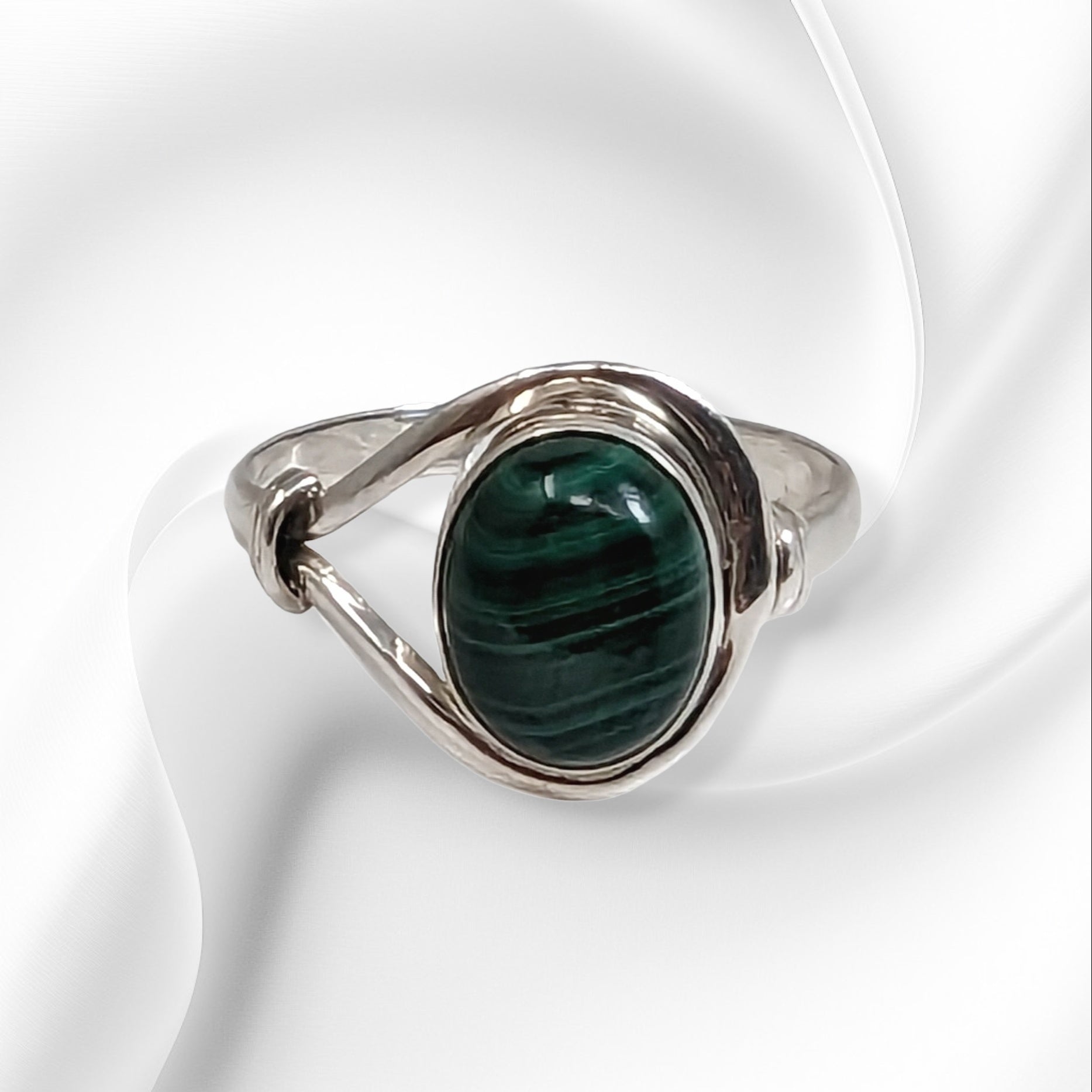 Add a touch of elegance to your jewellery collection with this beautiful handmade Ring. Crafted from genuine 925 Sterling Silver, this piece is perfect for any occasion. The last oval Malachite Gemstone is the centerpiece of this stunning assimmetrical Ring and is sure to turn heads. This Silver Ring is perfect for individuals who appreciate high-quality jewellery, is nichel-free and is hallmarked 925. The solitaire setting style gives this Ring a classic look. Ideal for Mother's Day, Christmas, Valentine's Day, Graduation, Anniversary, Birthday or just as a gift to yourself.