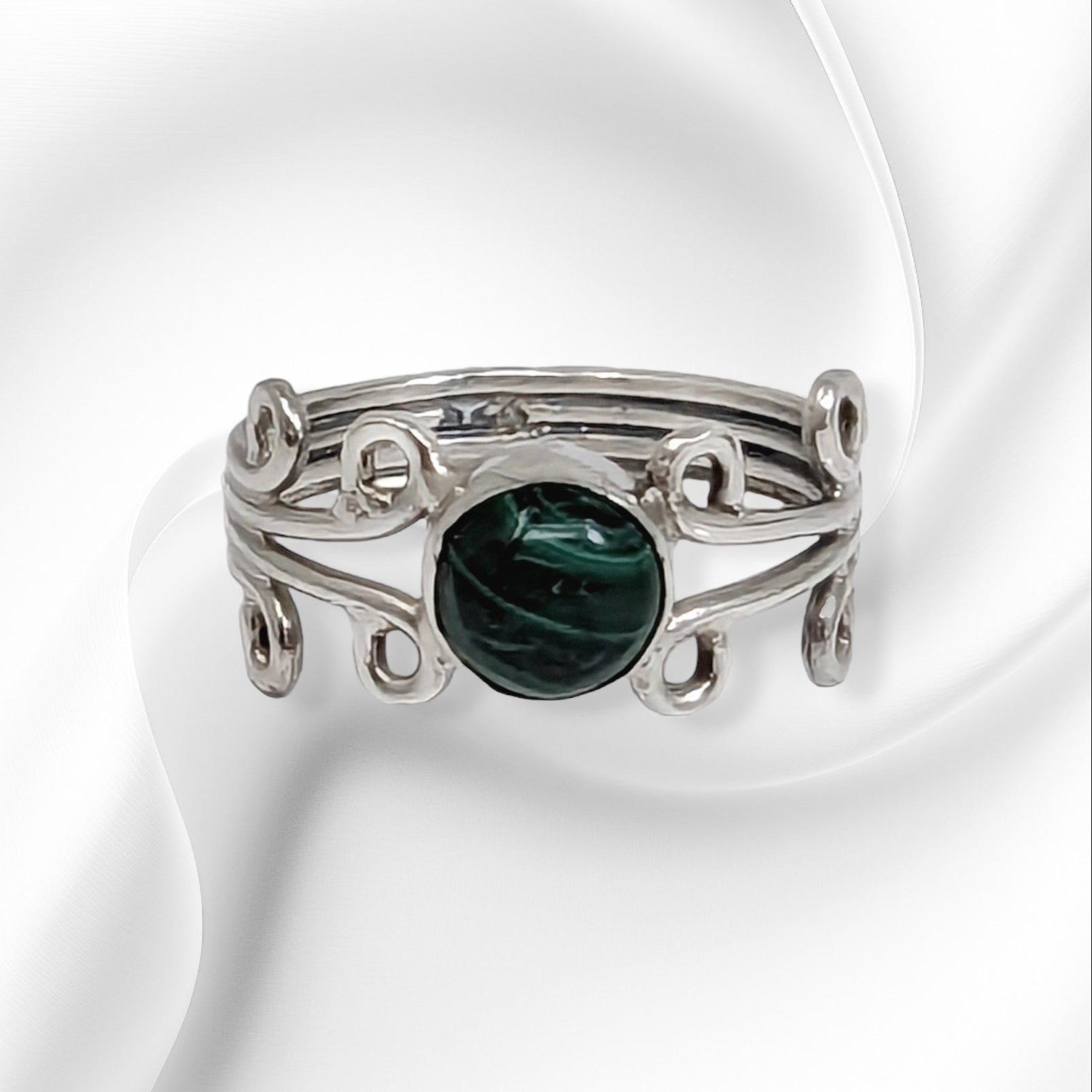 925 Sterling Silver Women's Ring with Authentic Malachite Gemstone