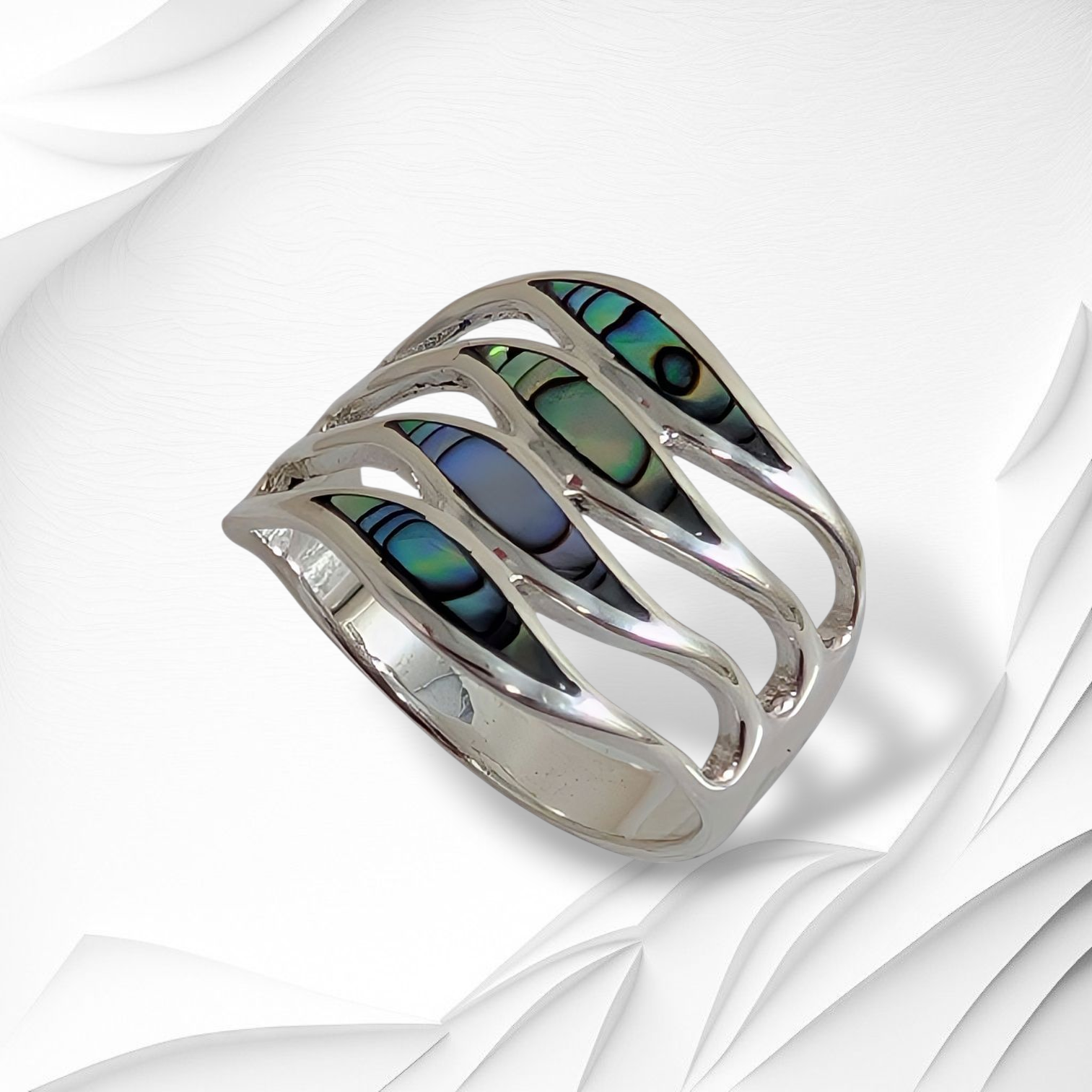 This stunning Woman's Ring has a unique and asymmetrical design, crafted from genuine 925 Sterling Silver and featuring an authentic Abalone Shell. The Handmade Ring is perfect for any occasion, whether it be an anniversary, graduation, birthday, Mother's Day, Christmas or Valentine's Day. With its exquisite craftsmanship and attention to detail, this Ring is sure to turn heads. Its stackable design, nickel-free and hallmarked 925. Whether you're buying it for yourself or as a gift, this Sterling Silver Ring is a perfect choice that will make anyone feel special.